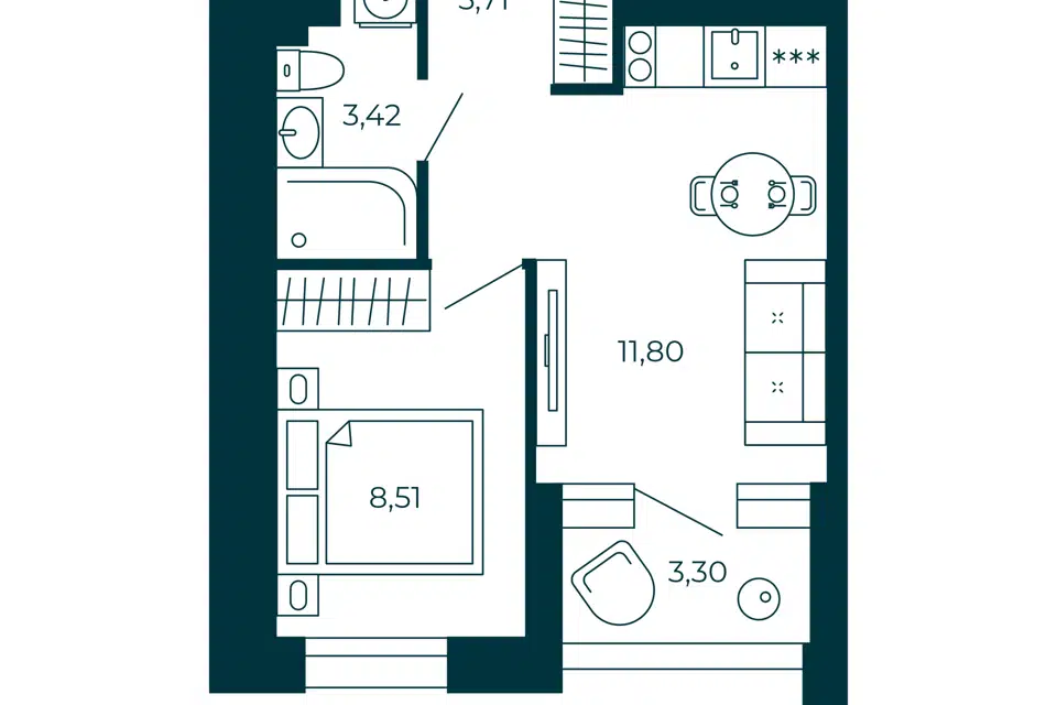 1-комн. кв., 30.01 м², 5/13 этаж