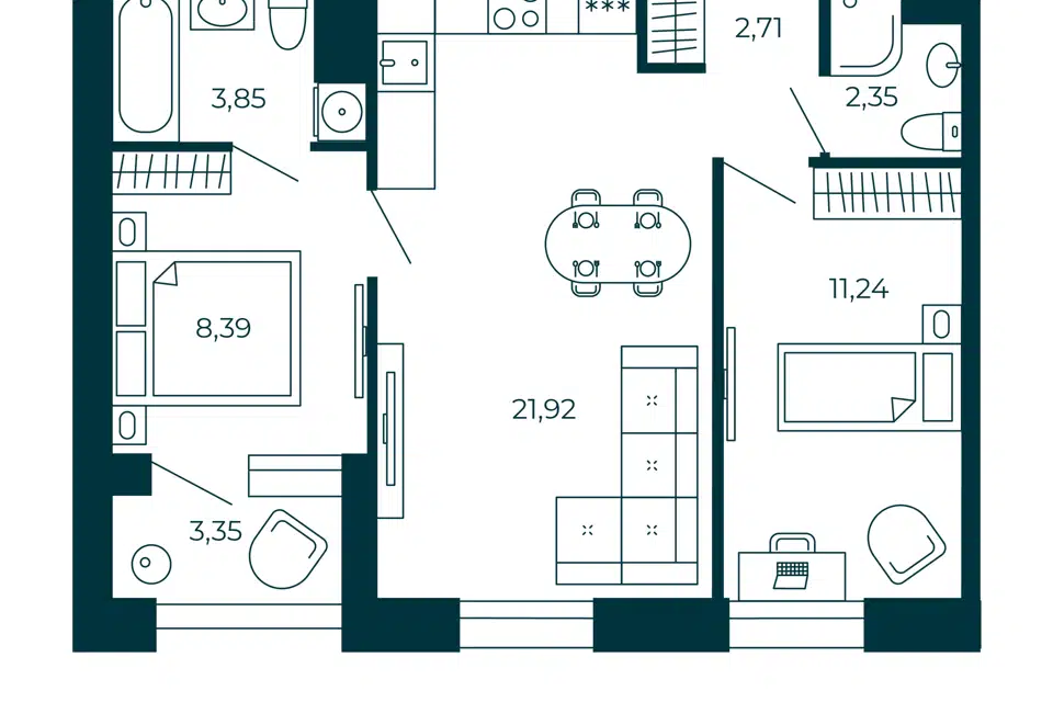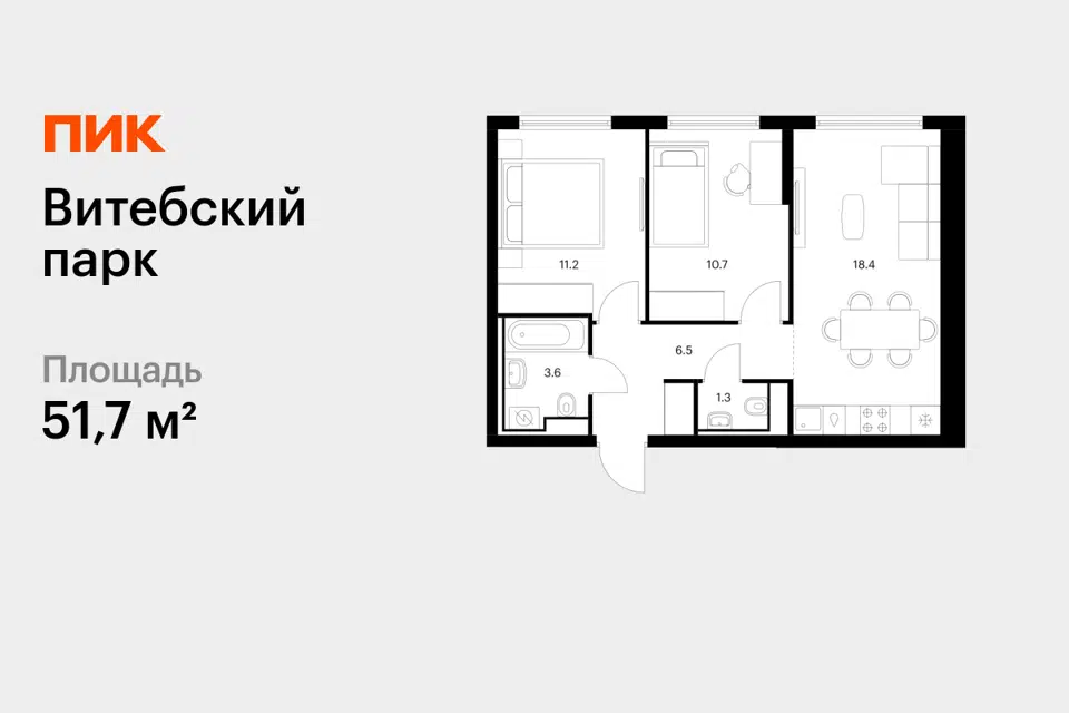 2-комн. кв., 51.7 м², 3/12 этаж