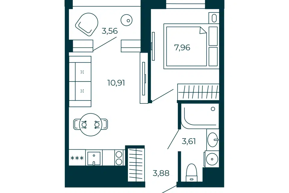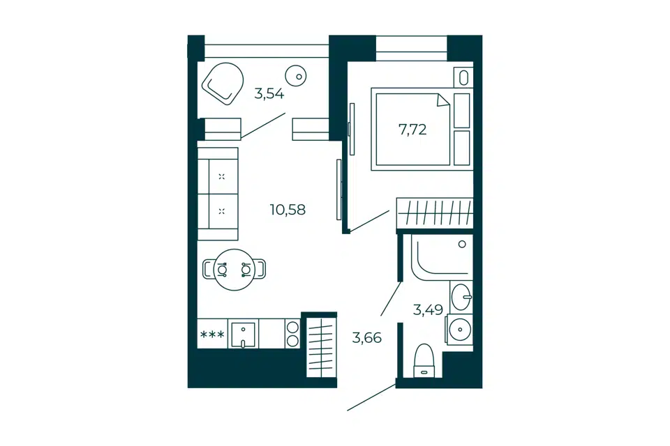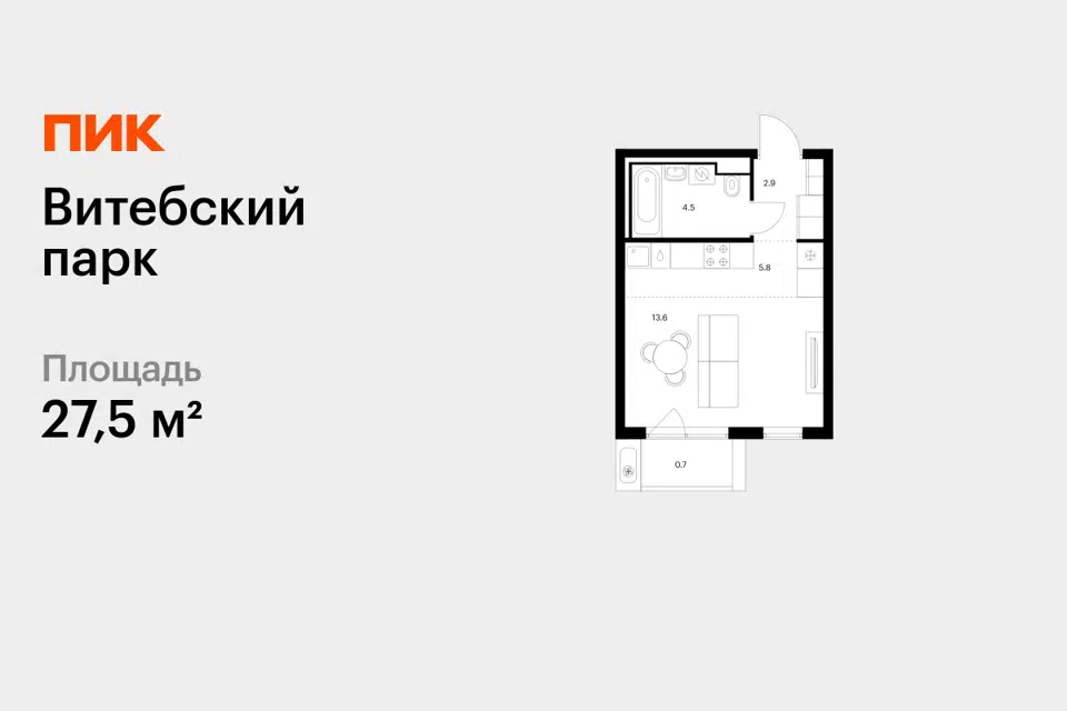 1-комн. кв., 28.14 м², 5/13 этаж