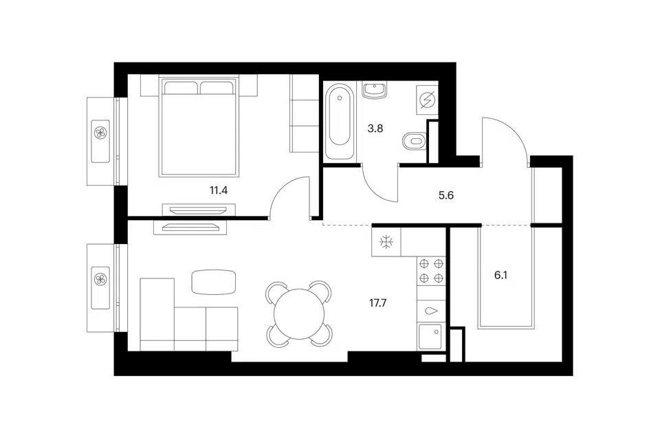 1-комн. кв., 38.5 м², 2/12 этаж