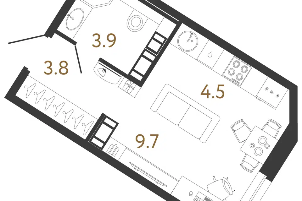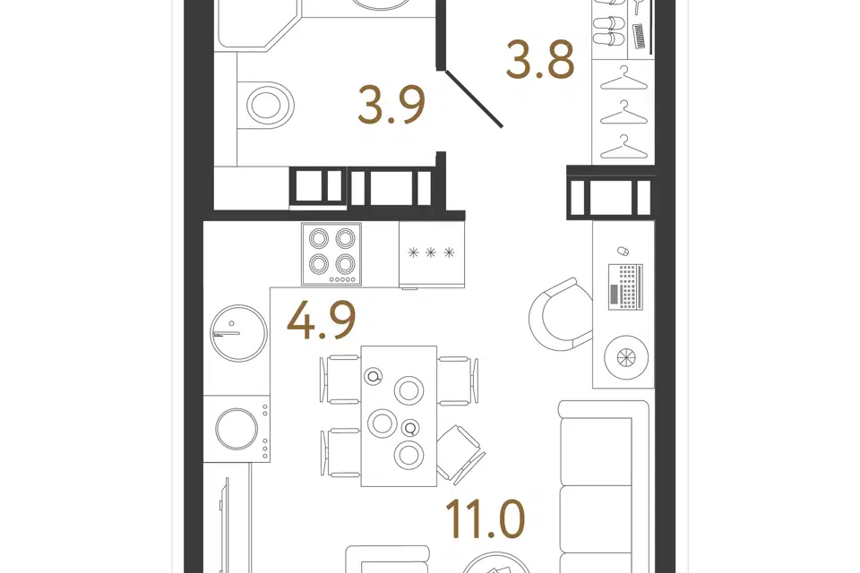Студия, 21.9 м², 8/14 этаж