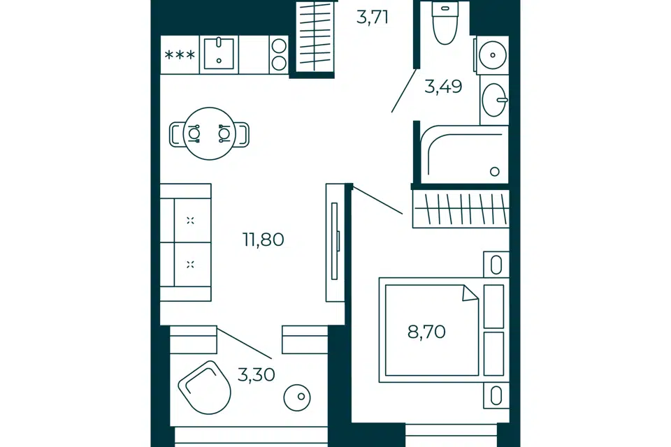 1-комн. кв., 33.3 м², 11/12 этаж