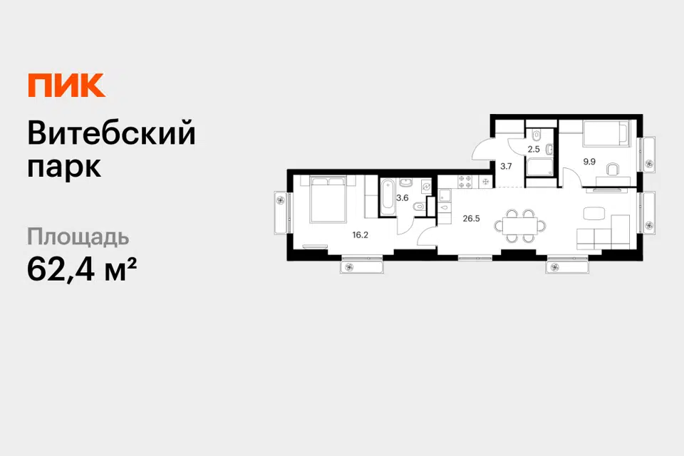 2-комн. кв., 62.4 м², 6/12 этаж
