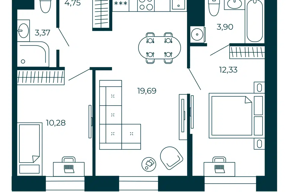 2-комн. кв., 52.8 м², 7/12 этаж
