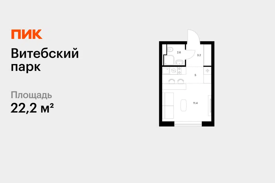 Студия, 22.2 м², 1/12 этаж