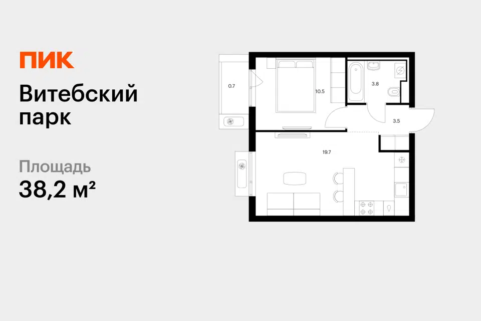 1-комн. кв., 38.2 м², 5/12 этаж