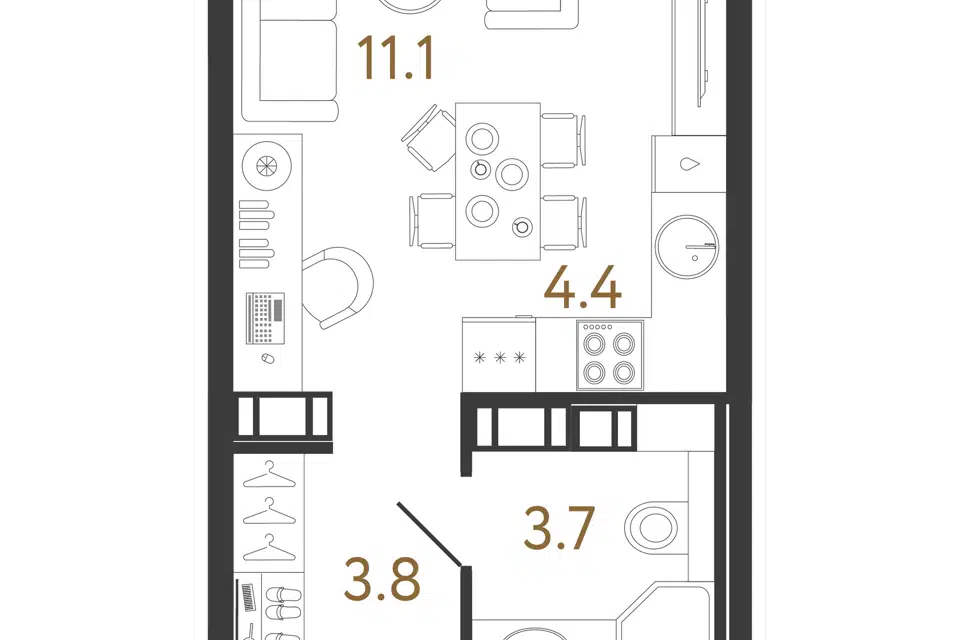 Студия, 25.8 м², 8/11 этаж