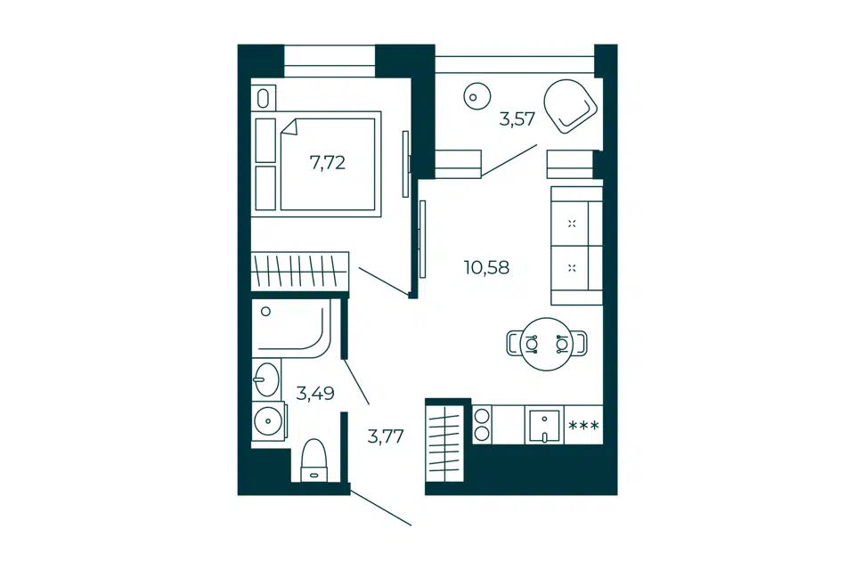 1-комн. кв., 27.37 м², 3/13 этаж