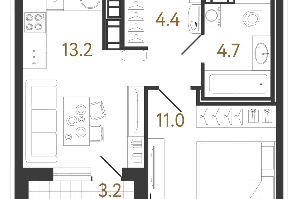 1-комн. кв., 30.9 м², 13/14 этаж