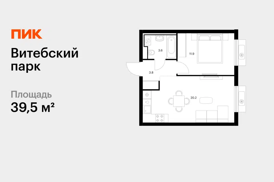 1-комн. кв., 39.5 м², 5/12 этаж