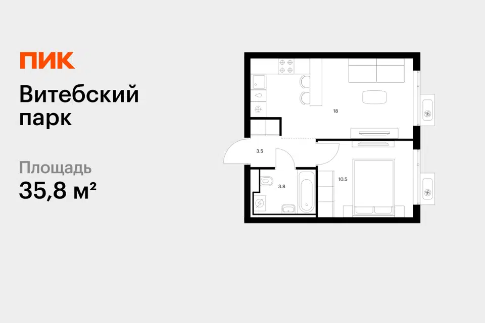 1-комн. кв., 35.8 м², 3/12 этаж