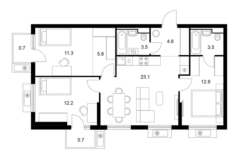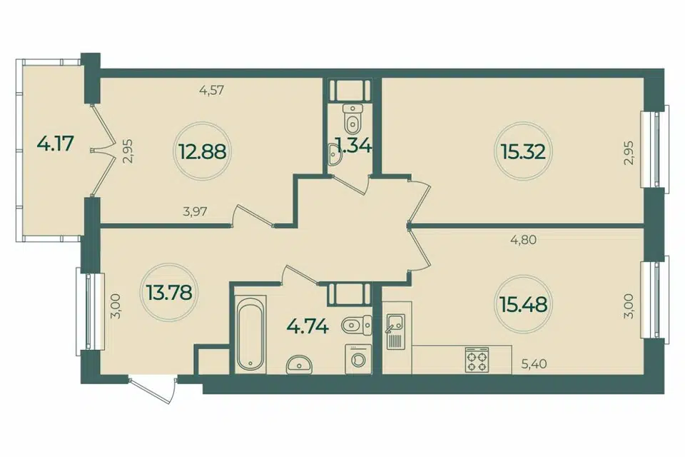 3-комн. кв., 78.3 м², 12/12 этаж