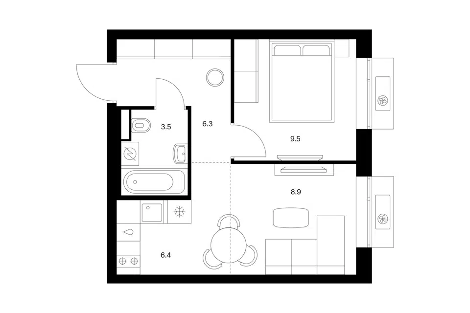 1-комн. кв., 29.1 м², 4/9 этаж