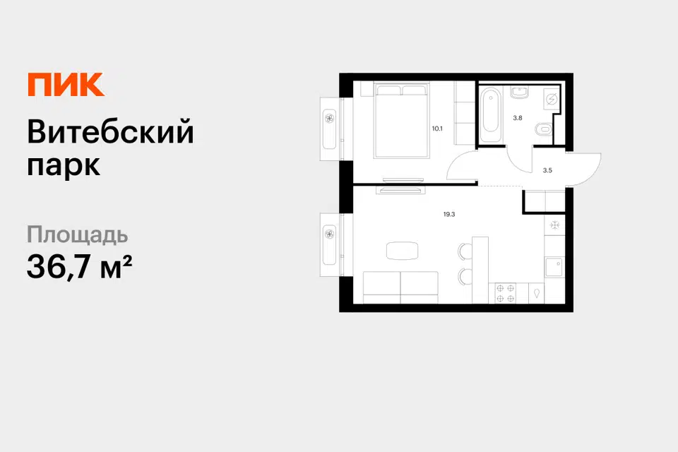 1-комн. кв., 36.7 м², 2/12 этаж