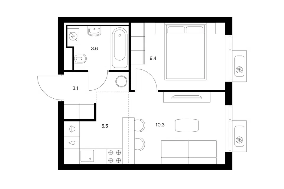 1-комн. кв., 31.9 м², 3/12 этаж