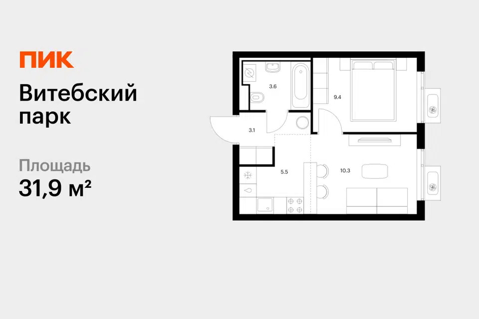1-комн. кв., 31.9 м², 5/12 этаж