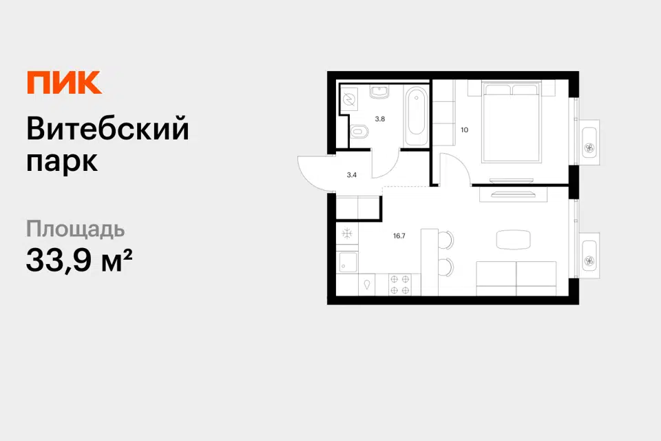 1-комн. кв., 33.9 м², 4/12 этаж