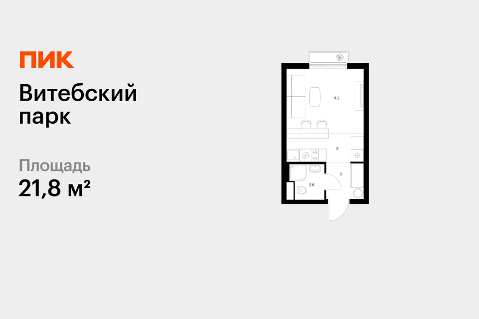 Студия, 21.8 м², 11/12 этаж