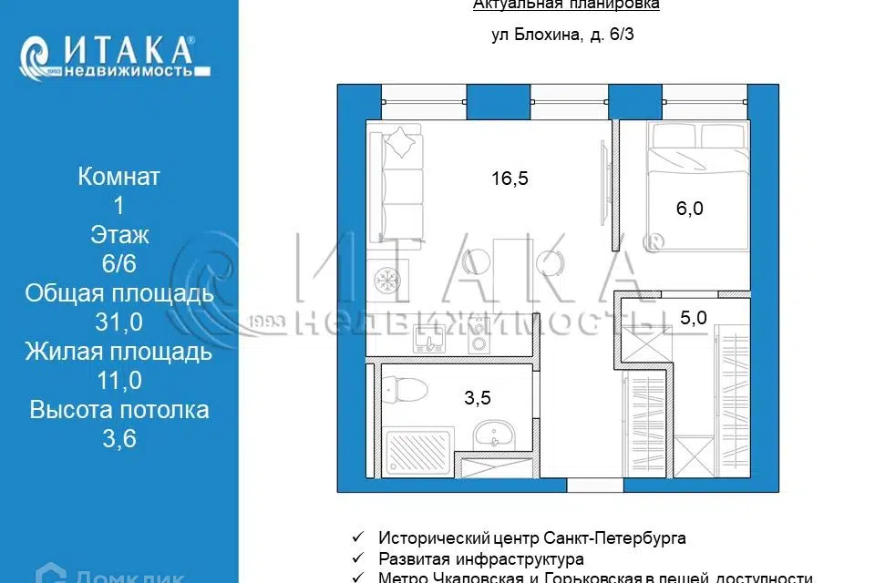 1-комн. кв., 31 м², 6/6 этаж