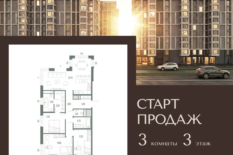 3-комн. кв., 100.8 м², 3/14 этаж