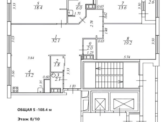 2-комн. кв., 104 м², 8/9 этаж