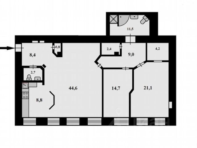 Два caнузла: 2,7 кв.м +11,5 кв.м