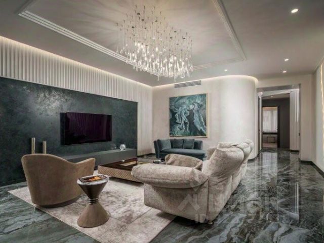 - Общая площадь квартиры составляет 348 кв.м., и она занимает весь этаж, обеспечивая приватность и уединение.