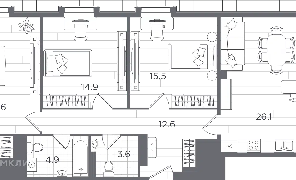 3-комн. кв., 100.9 м², 6/9 этаж