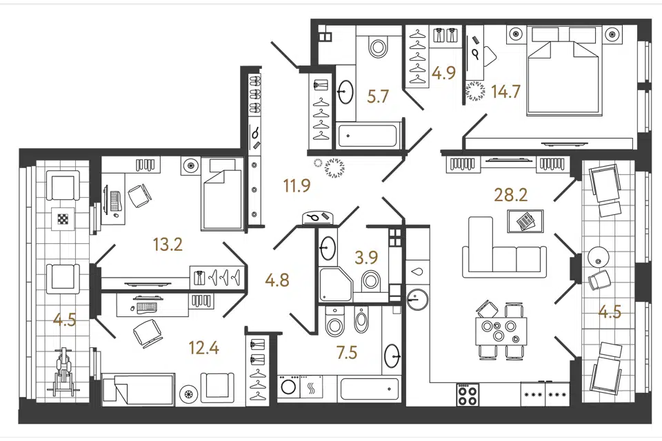 4-комн. кв., 117 м², 4/5 этаж
