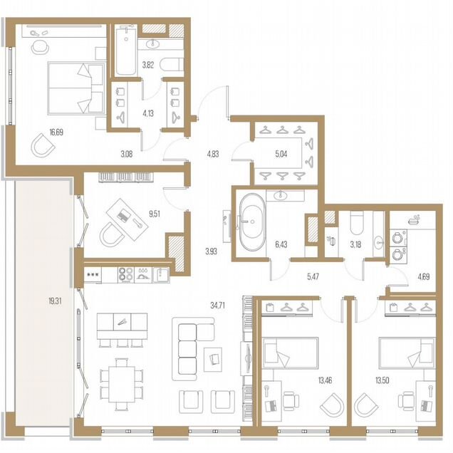 3-комн. кв., 124.6 м², 7/9 этаж