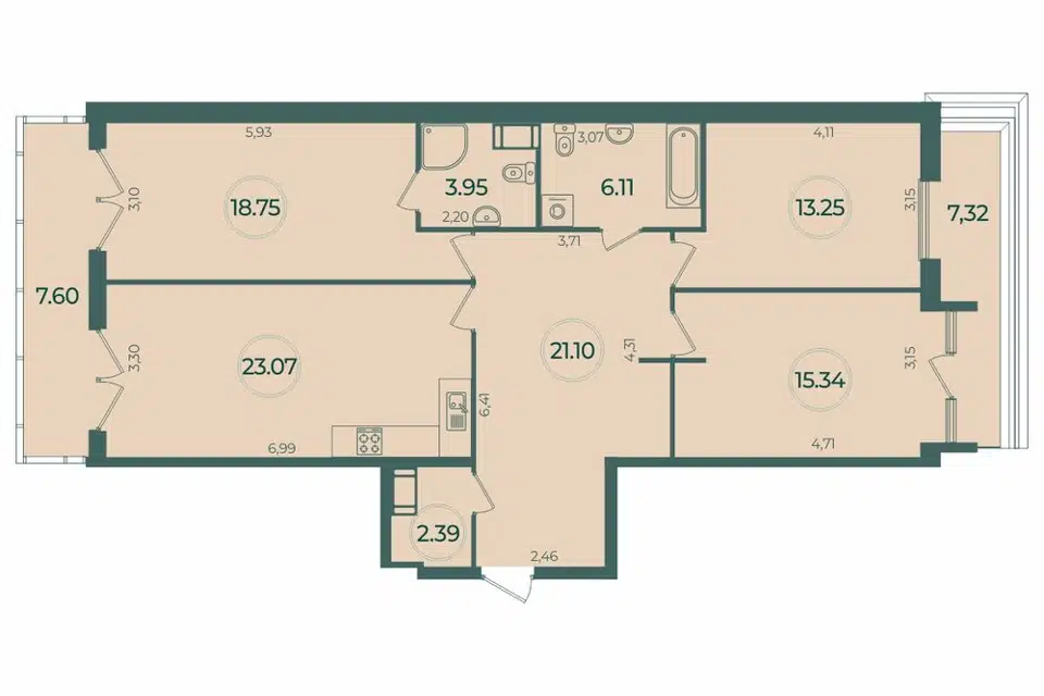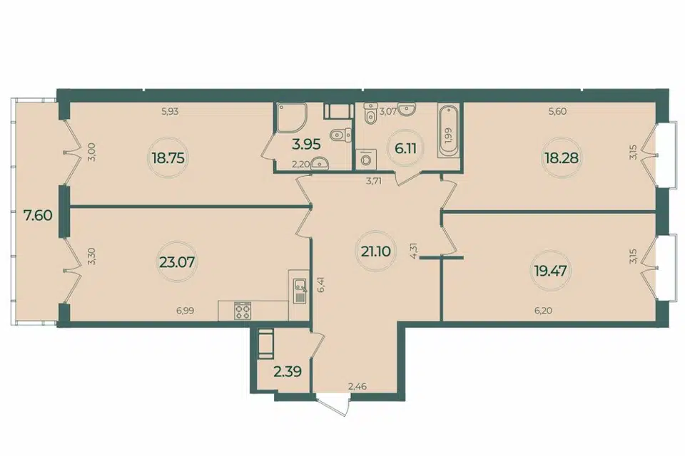 3-комн. кв., 103.31 м², 3/9 этаж