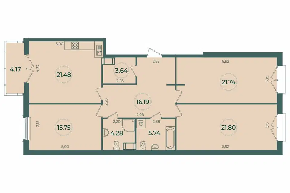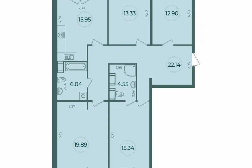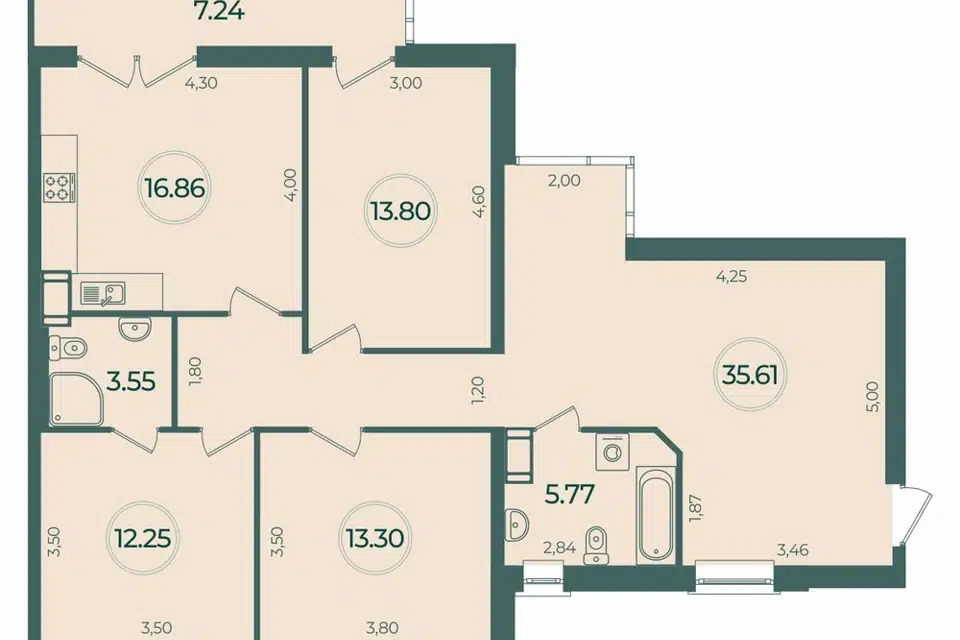 4-комн. кв., 121.4 м², 4/5 этаж