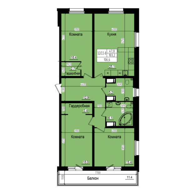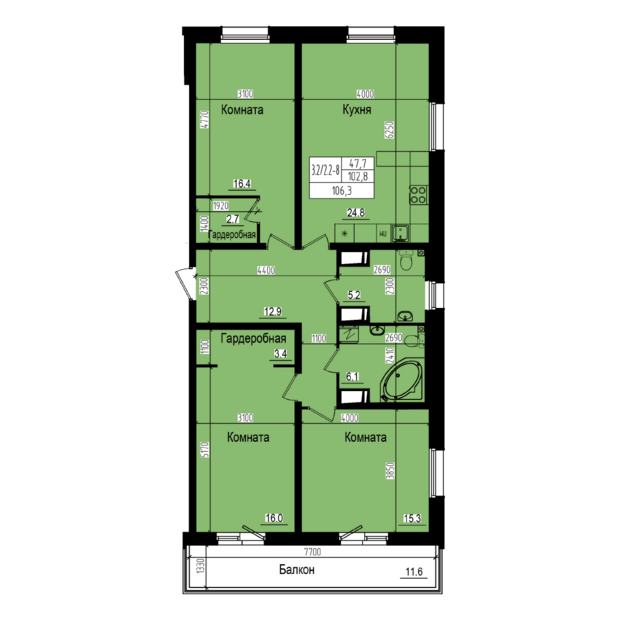 3-комн. кв., 106.6 м², 4/23 этаж