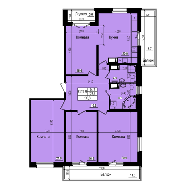 4-комн. кв., 130.3 м², 20/23 этаж
