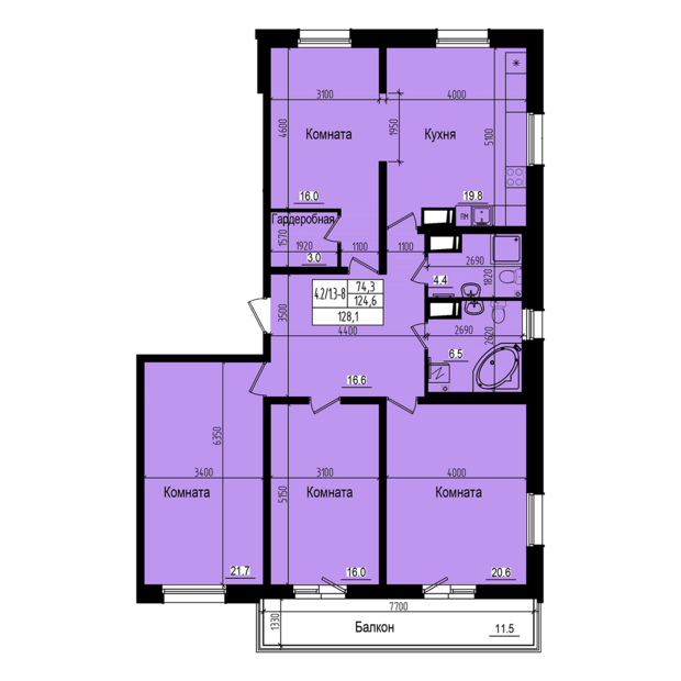 4-комн. кв., 128.1 м², 4/23 этаж
