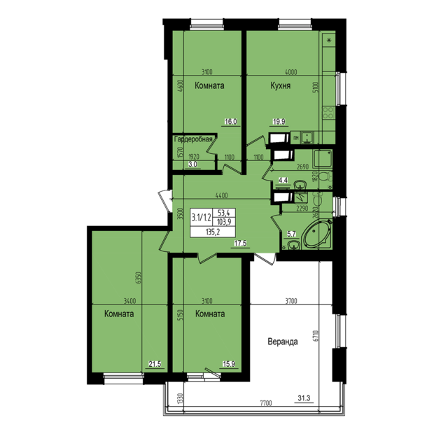 3-комн. кв., 103.7 м², 2/23 этаж