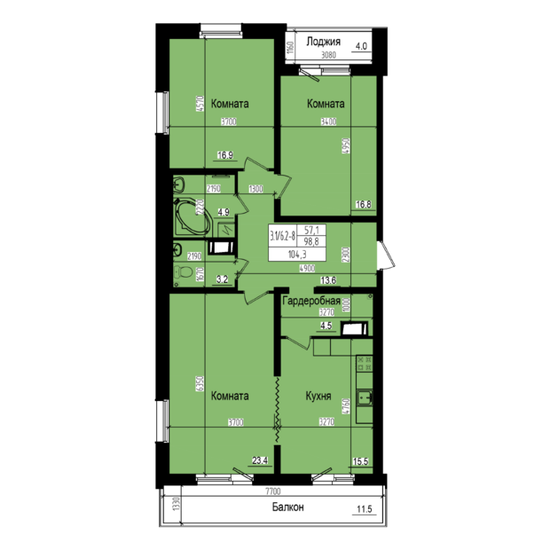 3-комн. кв., 104.6 м², 4/23 этаж