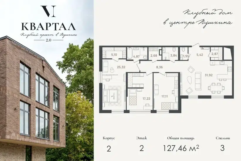 3-комн. кв., 127.46 м², 2/5 этаж