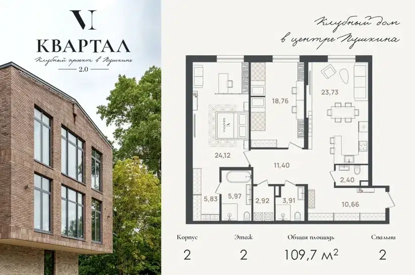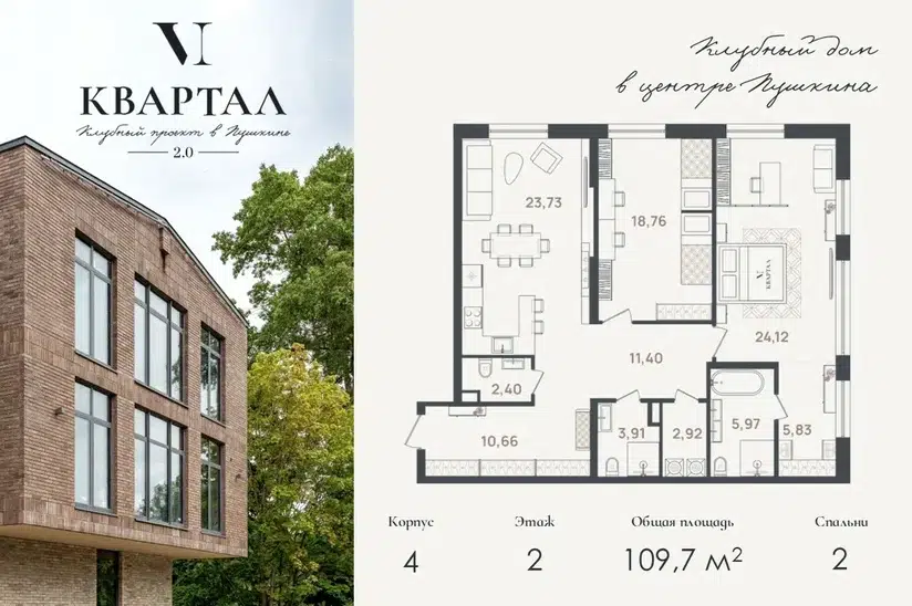 2-комн. кв., 109.7 м², 2/5 этаж