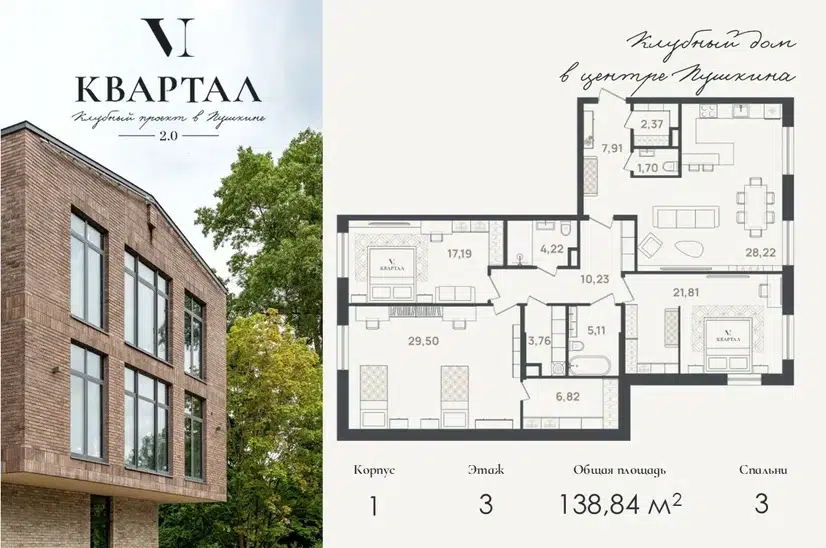 3-комн. кв., 138.84 м², 3/5 этаж