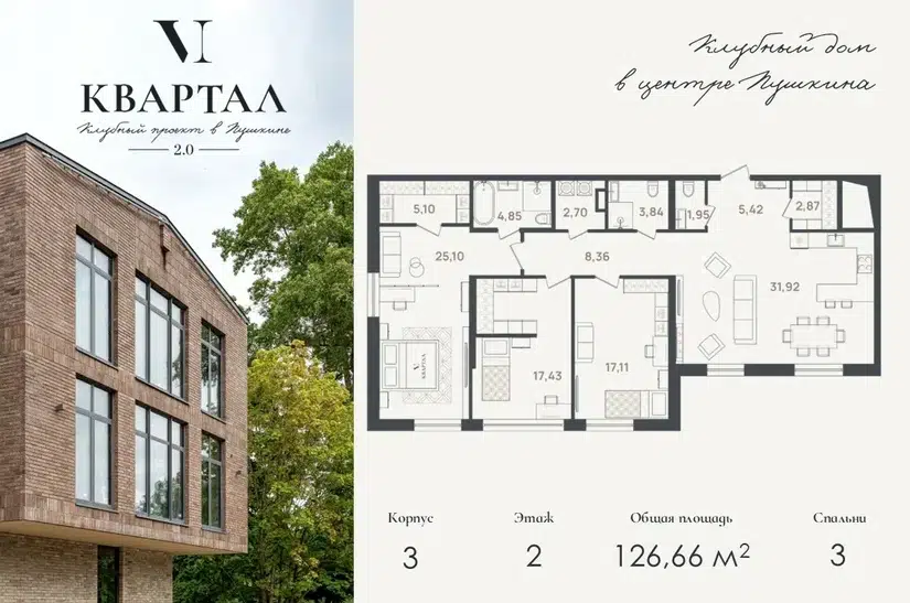 3-комн. кв., 126.66 м², 2/5 этаж
