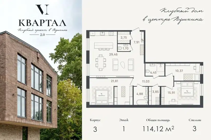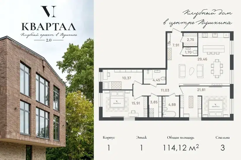 3-комн. кв., 114.12 м², 1/5 этаж