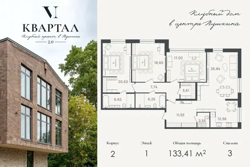 3-комн. кв., 133.41 м², 1/5 этаж