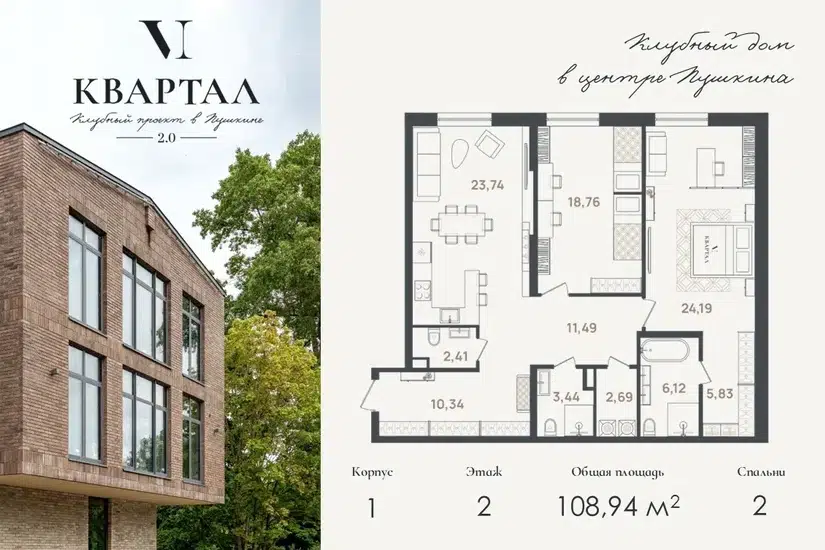 2-комн. кв., 108.94 м², 2/5 этаж