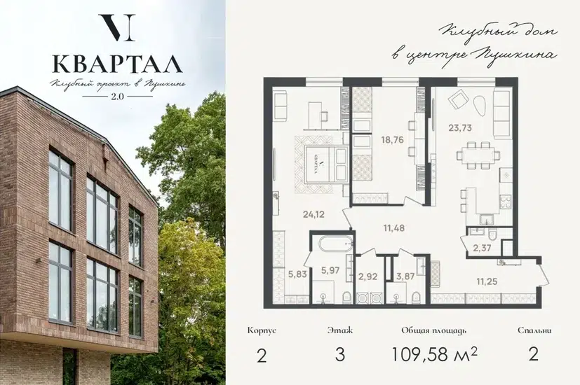 2-комн. кв., 109.58 м², 3/5 этаж