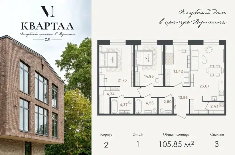3-комн. кв., 105.85 м², 1/5 этаж