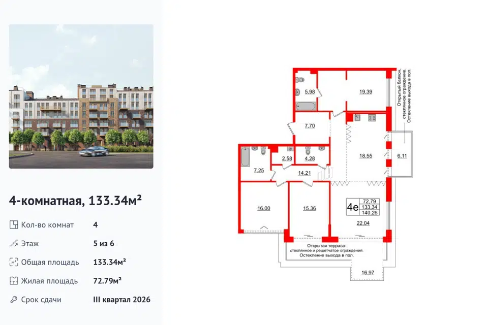 4-комн. кв., 133.34 м², 5/1 этаж