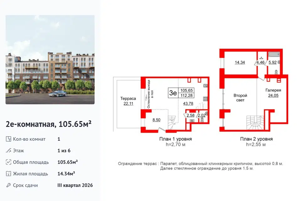 3-комн. кв., 106.58 м², 5/16 этаж