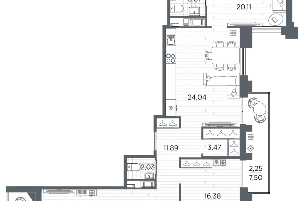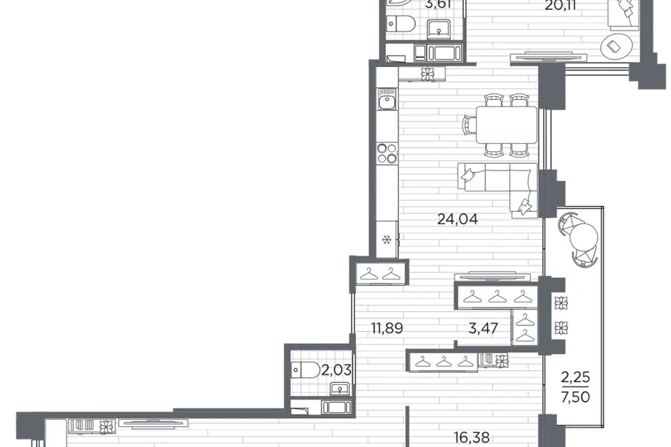 6-комн. кв., 203.1 м², 3/7 этаж
