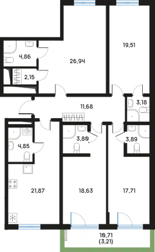 3-комн. кв., 106.87 м², 11/12 этаж